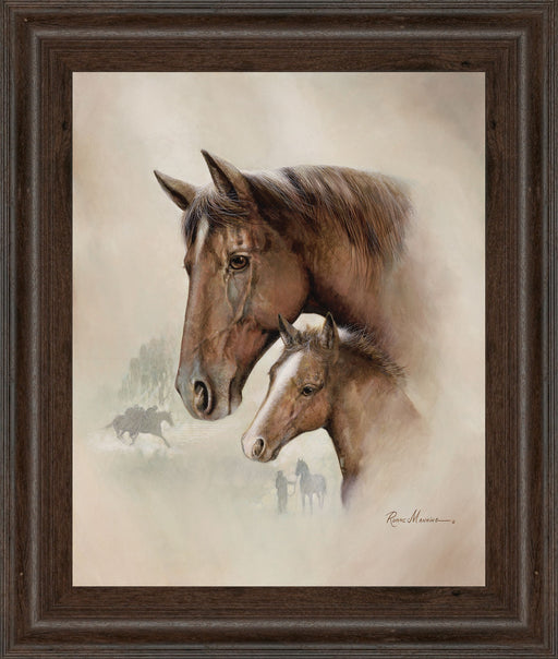 Classy LivingThis captivating piece reveals the tender connection between a proud horse and its curious foal, portrayed in warm, earthy hues that invite a sense...