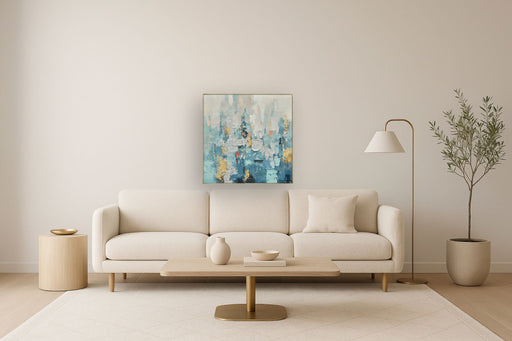Classy LivingImmerse yourself in the soothing blend of teal shades with this hand-painted abstract canvas. Crafted on a durable, high-quality canvas, the rich t...