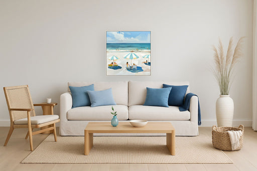 Classy Living“Under the Umbrella I” invites you to a serene coastal escape with its hand-painted oil canvas that beautifully captures a sunny beach scene. The a...