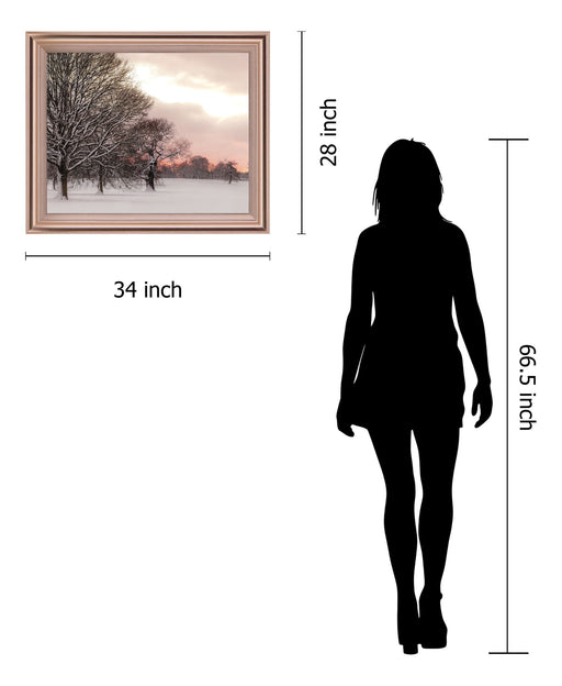 Classy LivingImmerse yourself in the tranquil charm of a winter landscape kissed by the soft hues of a rosy sunset. This framed photographic print captures snow...