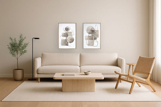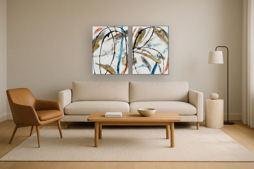 Classy LivingThe "Modern Minimalist Linear Duo" is a captivating set of hand-painted canvases that embody contemporary abstract art. Each piece features soft, n...