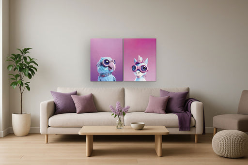 Classy LivingBring a playful and whimsical charm to your child's space with "Spectacle Buddies: Parrot & Unicorn Pop Duo," a vibrant wrapped canvas set. Thi...
