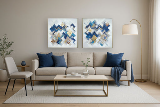 Classy LivingThe Blue & Gold Chevron Luxe Diptych is a stunning hand-painted mixed media canvas set that brings contemporary elegance to any space. Featurin...