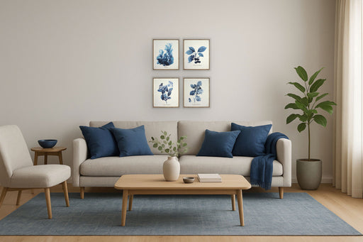 Classy LivingThe "Indigo Botanical Quartet" is a captivating hand-painted canvas set that brings the serene beauty of nature into your space. Featuring four dis...