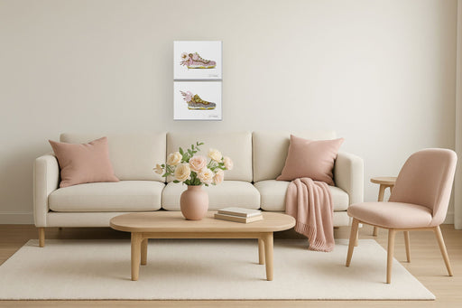 Classy LivingThe "Blossom Luxe Kicks Duo" is a captivating hand-painted wrapped canvas set that blends fashion and art into a unique statement piece. Each canva...