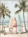 “Surfside” captures the serene beauty of a coastal morning with three surfboards resting against a makeshift rack between palm trees. This hand-painted oil canvas evokes a peaceful beachside vibe, blending soft pastels and natural tones to bring a sense of calm and adventure to your space. Perfectly framed in light beige polystyrene, it arrives ready to hang, making it an effortless addition to any living room or coastal home. Each purchase supports a social cause, donating a meal to a hungry American child, adding heart to this artful escape.