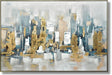 Golden Skyline Reverie captures the essence of a bustling cityscape through rich textures and hand-painted brushwork on a durable canvas. This contemporary oil painting features a harmonious blend of champagne gold, soft blues, and muted neutrals, evoking a dreamy urban reverie that transforms any living room, office, or den into a sophisticated sanctuary. Arriving fully framed and ready to display, this piece combines artistry and social impact, as each purchase donates a meal to a hungry child, making it a meaningful addition to your home.