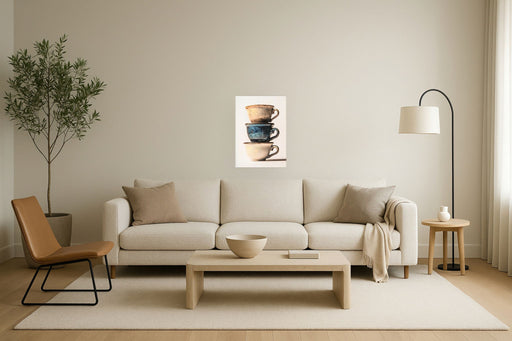 Classy LivingDiscover the charm of rustic elegance with this captivating photograph of stacked cups. Each cup features unique textures and subtle glitter accent...