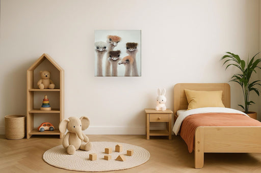 Classy LivingBring a touch of whimsy to your space with 'Feathered Expressions,' a delightful acrylic painting capturing the quirky charm of ostriches. This han...