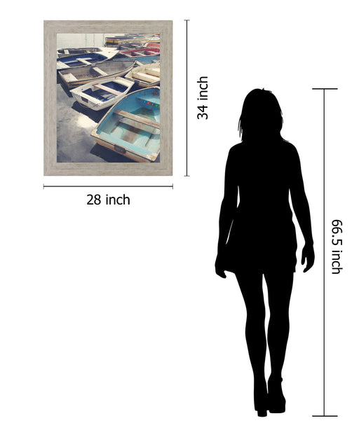 Classy LivingStep into a quiet harbor scene where time seems to slow, captured in this evocative framed photographic print. Weathered boats, each with its own s...