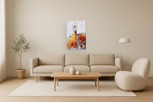 Classy Living“Fiesta of Color Ballet Abstract” is a vibrant hand-painted acrylic on canvas that captures the dynamic grace of a ballet dancer in motion. The art...