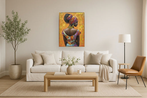 Classy LivingThis hand-painted oil canvas captures the elegant profile of an African woman adorned in vibrant traditional attire against a rich orange backdrop....