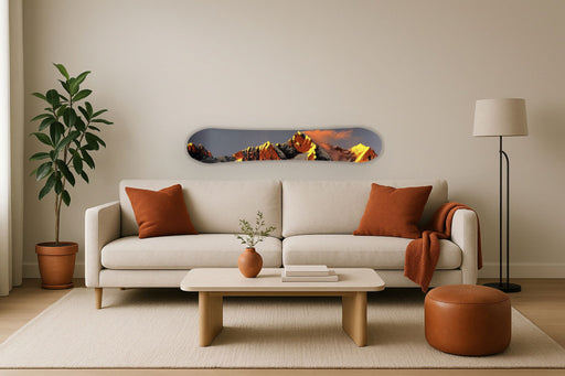 Classy LivingThis hand-painted snowboard transforms a classic winter sport symbol into a striking piece of contemporary wall art. Featuring a vivid mountain lan...