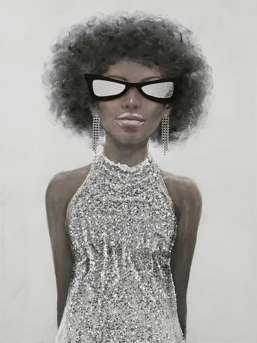 Classy LivingThis exquisite hand-painted mixed media wall art captures the striking image of an elegant woman adorned in shimmering silver attire. The piece fea...