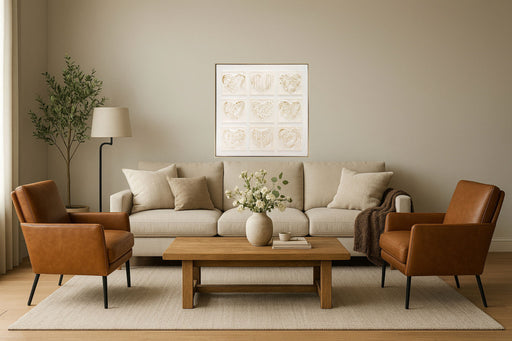 Classy Living“Textured Whisper Hearts” is a captivating mixed media wall art piece that brings subtle elegance and tactile intrigue to any space. This 3D canvas...