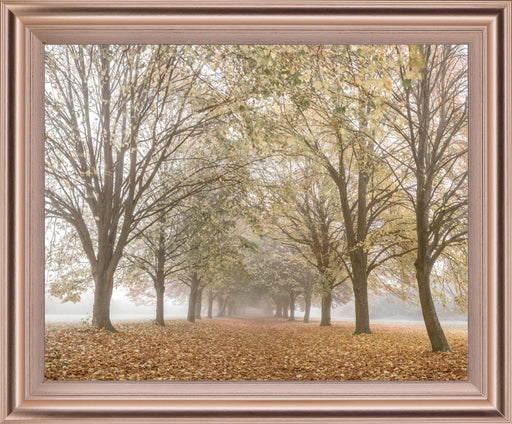 Classy LivingStep into the quiet beauty of fall with this serene scene of a tree-lined pathway covered in golden leaves. The soft mist and muted autumn tones in...