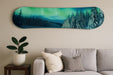 Experience the magic of the Northern Lights captured on a hand-painted snowboard crafted from fine Chinese maple wood. This contemporary graphic art piece transforms an urban canvas into a stunning landscape, blending street art influences with natural beauty. Each board is hand-embellished to enhance texture and depth, making every piece unique. Ready to display with professional mounting hardware, it brings a vibrant, expressive energy to living rooms, bedrooms, or offices. With every purchase, a meal is donated to a hungry American child, adding social impact to your art collection.