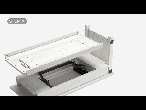 Open the door to modern farmhouse style with this lift-top coffee table. The beautiful woodgrain look and classic crossbuck metal accents are a cool touch, while the lower shelf provides surface space for fashionable home accessories. Sporting a gray replicated wood grain effect, its handy spring-loaded mechanism brings the tabletop closer to you. This versatile table makes it easier than ever to eat, work or play from the comfort of your sofa.