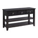 The Kendyl Sofa Table is the perfect addition to your home! This sofa table features open shelving and three spacious drawers, allowing you to store away your favorite décor or coffee table books. The table is finished in a rich, espresso; making it the perfect transitional color for your home. Ideal for dressing up any living room space, den, or hallway in your home. With a contemporary design, this sofa table mixes well with other colors.