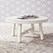 Elevate your space with the Modern Farmhouse splay leg cocktail table and splay leg end tables. Crafted of poplar solids with knotty white oak veneers, features heavy distressing, an appealing high-low planked top, and mortise tension accents on the legs for extra design element. Enjoy family game night or have your favorite snack with it spacious design. Kit includes one splay leg cocktail and two splay leg end tables. Also available in flea market white finish.