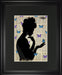 This captivating piece features the graceful silhouette of a woman surrounded by delicate blue and purple butterflies, set against a vintage text backdrop. The interplay of shadow and color creates a serene, contemplative mood that invites quiet reflection. Enhanced by a sleek black frame and double matting, this artwork adds a sophisticated touch of whimsy and elegance to any living room, bedroom, or office space, making it a timeless statement of beauty and quiet charm.