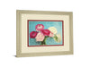 This artwork invites you into a serene moment where delicate ranunculus flowers bloom in soft watercolor tones. The gentle pinks, whites, and greens contrast beautifully against a tranquil blue background, evoking the freshness of a summer garden. Encased in a refined beige frame with double matting in cream and deep red, this piece adds a layer of elegance and depth to any living space. The real glass covering ensures protection while enhancing the vibrant colors, making it a timeless floral accent that brings warmth and sophistication to your home.