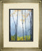 Step into a serene woodland where slender trees reach upward through a soft, misty blue sky. The delicate gold and green leaves whisper the calm of an early morning by the riverbank, captured with subtle elegance in this graphic art piece. Framed in a refined gold finish with double matting and premium real glass, it brings a peaceful sanctuary to any living room or bedroom, blending nature's tranquility with sophisticated style.