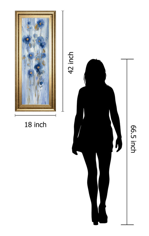 Classy LivingSeaside Blooms invites you into a tranquil coastal garden where delicate blue and gold flowers sway gently in a soothing breeze. This vertical oil ...