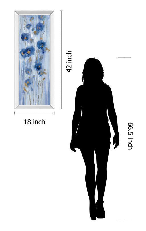 Classy LivingSeaside Blooms invites you into a tranquil coastal garden where delicate blue and gold flowers sway gently in a soothing breeze. This vertical oil ...