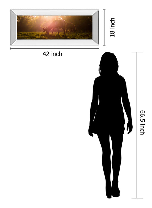 Classy LivingExperience the tranquil charm of dawn with this captivating framed photograph, showcasing two deer grazing quietly in a sunlit meadow. The warm gol...