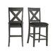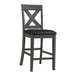 Alex Counter Height Side Chair Set in Grey is perfect for your dining room. The chairs feature an X-back design and the seats are upholstered in a faux leather fabric; adding extra flair to this set. The foam cushion seats will keep you comfortable during long dinners. This set includes two side chairs and ships in one box. The set is finished in a warm, grey and pairs perfectly with the faux leather upholstery on the chairs.