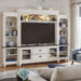 Indulge in a classic look and casual feel with the Allyson Park entertainment center. Crafted with poplar solids with cathedral oak tops and pine veneer body, fully stained interior drawers, beveled glass doors, and touch lighting to illuminate the piece. Wire management provisions effortlessly accommodates a DVD player or gaming console of choice.