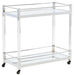 Reflect your love for contemporary style with this bar cart. With two shelves made with mirrored glass, it adds both light and a touch of glam to your space. A clear acrylic and chrome-tone frame is a modern take on understated elegance. And thanks to rolling casters, serving your guests has never been easier.