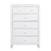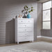 Indulge in cottage design with the Cottage View 5 drawer chest. Crafted by melamine and a rubberwood solid frame, this piece features kenlin drawer glides, bottom case dust proofing, solid wood picture framed molding, laminate drawer interior, bluff cut top drawers, wood knob hardware, and is anchored by bun feet. This piece is available in an alternate finish and the melamine is scratch resistant, sure to make this piece last in any home.