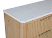Elevate your sanctuary with this chic and contemporary bedroom ensemble that blends functionality with a sleek, modern aesthetic. The collection features a luxuriously upholstered bed, showcasing a high headboard and footboard with a refined fabric selection that exudes comfort and sophistication. Accompanying the statement bed are matching pieces, including a streamlined dresser, nightstand and chest, each sporting a minimalist design with crisp engineered stone tops and bold, brass-accented hardware.