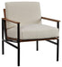 Unwind after a busy workday when you rest in this beautiful accent chair. A durable metal frame delivers intriguing industrial style with a rugged look as it ensures long-lasting stability. Plush, foam-filled cushions are wrapped in lovely fabric upholstery and provide a comfortable lounging spot in a master suite or home office. Combining elements for a mixed materials look that injects rustic flair into urban, contemporary or industrial aesthetics, this impressive chair adds eye-catching style.